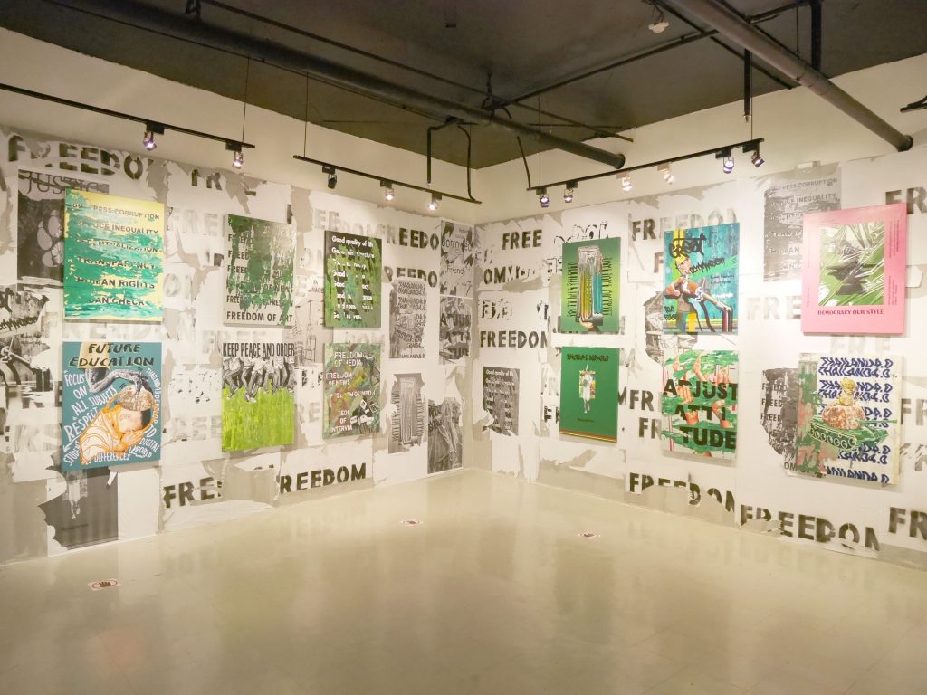 彼はアナロジーと暗喩を使い、現在の状況に置かれた人々のストーリーを語るために、概念を既存の言葉やイメージとは反対のポスターに変換しています。記号論、想像力、そしてコンセプトを通して、政治的抑圧、拘束、嫌がらせ、制限、欺瞞などの下にある人々の歴史を語ります。